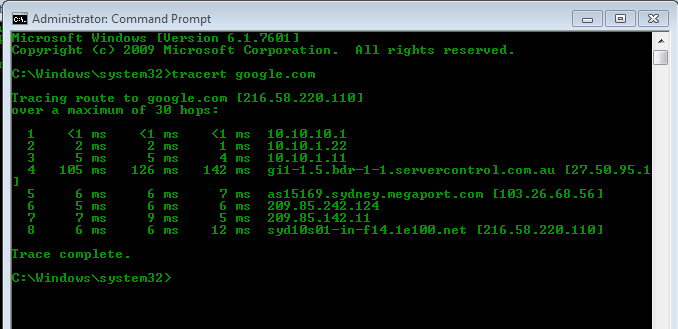 - tracert serversaustralia.com.au